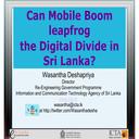 这是斯里兰卡信息和通信技术局 (ICTA) 政府再造项目主任 Wasantha Deshapriya 先生在关于“移动繁荣能否跨越斯里兰卡的数字鸿沟?”的演讲Connecting Asia-Pacific's Digital Society for Building Resilience 于 2012 年 9 月 5 日至 6 日在斯里兰卡科伦坡举行。...